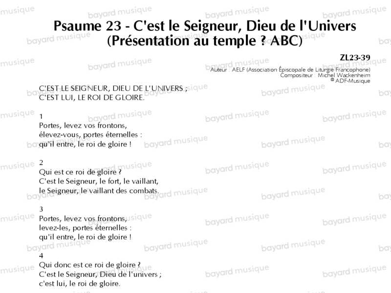 Psaume 23 - C'est le Seigneur, Dieu de l'univers (Présentation au temple, 2 février, années A, B et C)