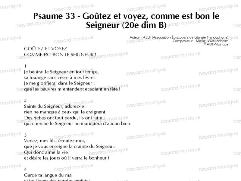 Psaume 33 - Goûtez et voyez comme est bon le Seigneur (20e dimanche du temps ordinaire, année B)