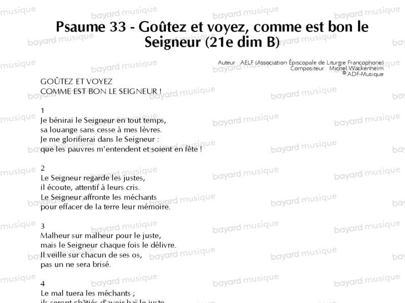 Psaume 33 - Goûtez et voyez comme est bon le Seigneur (21e dimanche du temps ordinaire, année B)