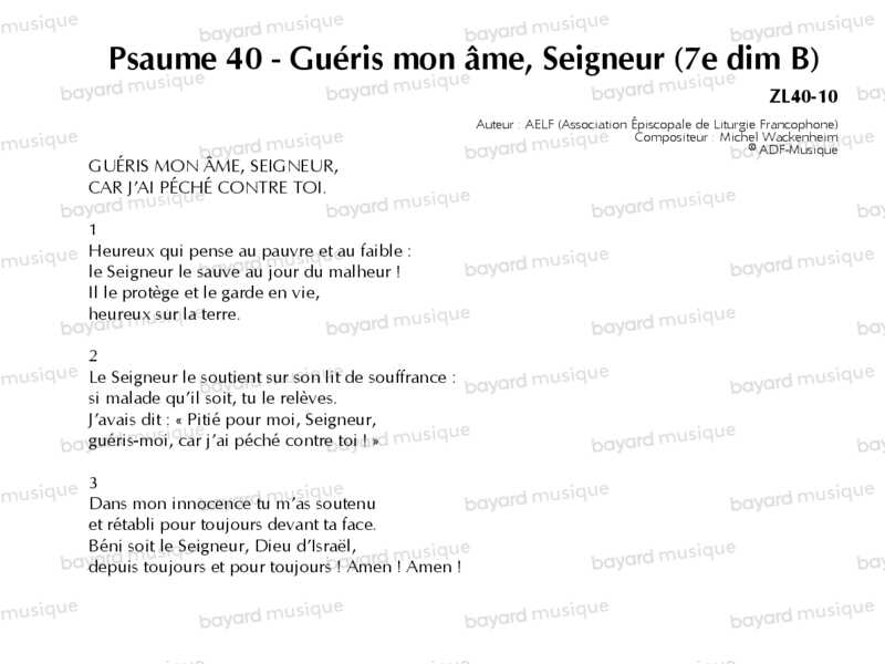 17. Psaume 40 - Guéris mon âme, Seigneur (7e dimanche du temps ordinaire, année B)