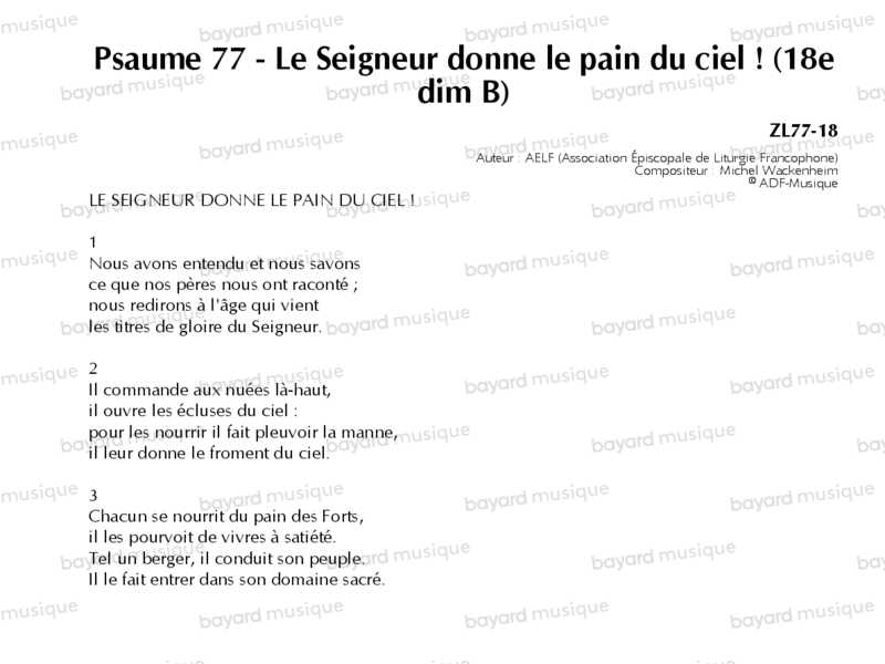 Psaume 77 - Le Seigneur donne le pain du ciel ! (18e dimanche du temps ordinaire, année B)