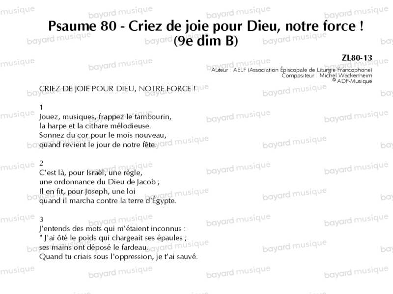 Psaume 80 - Criez de joie pour Dieu, notre force ! (9e dimanche du temps ordinaire, année B)