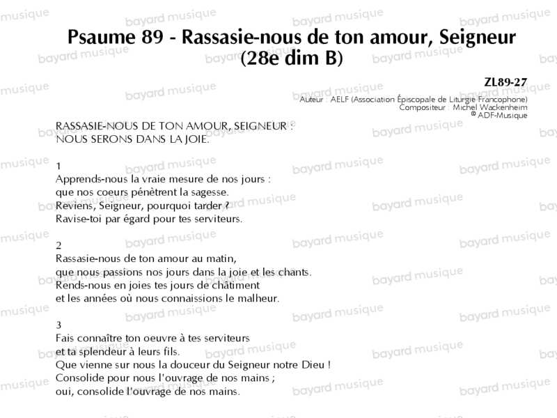 Psaume 89 - Rassasie-nous de ton amour, Seigneur (28e dimanche du temps ordinaire, année B)