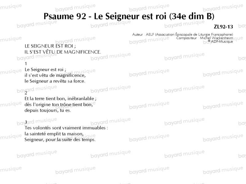 Psaume 92 - Le Seigneur est roi (34e dimanche du temps ordinaire, année B)