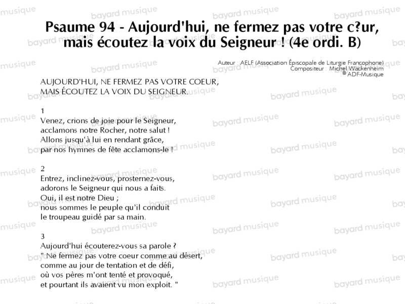 13. Psaume 94 - Aujourd'hui, ne fermez pas votre cœur (4e dimanche du temps ordinaire, année B)