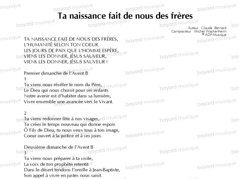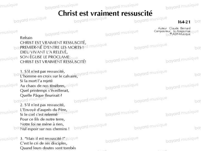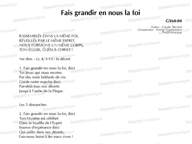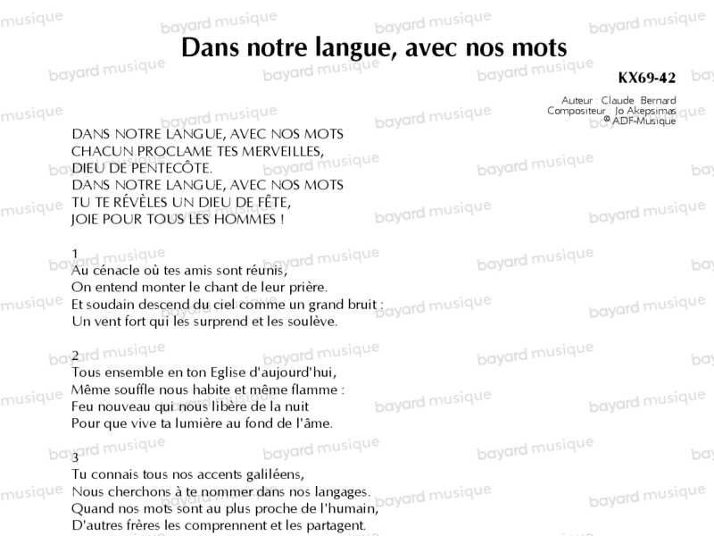 Interprété par Le Jeune Chœur Liturgique, Jo Akepsimas, Béatrice Sépulchre, Benoit Lebrun, Pierre Lebrun, Audrey Paqueriaud, Vanessa Berrué et Léo Vym.