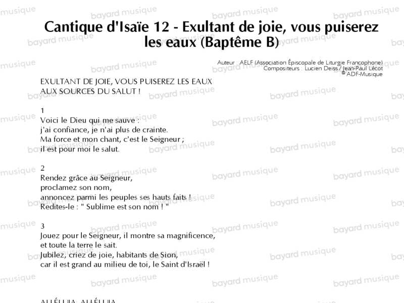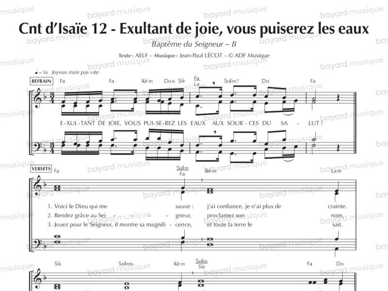 11. Cantique d'Isaïe 12 - Exultant de joie, vous puiserez les eaux aux sources du salut (Baptême du Seigneur, année B)