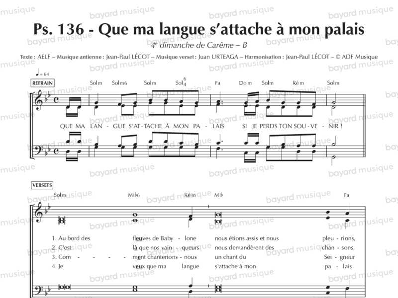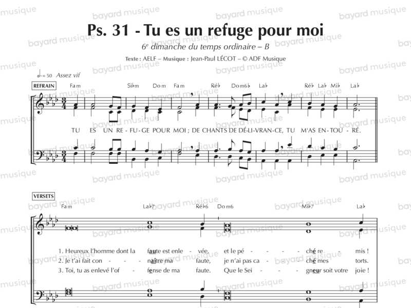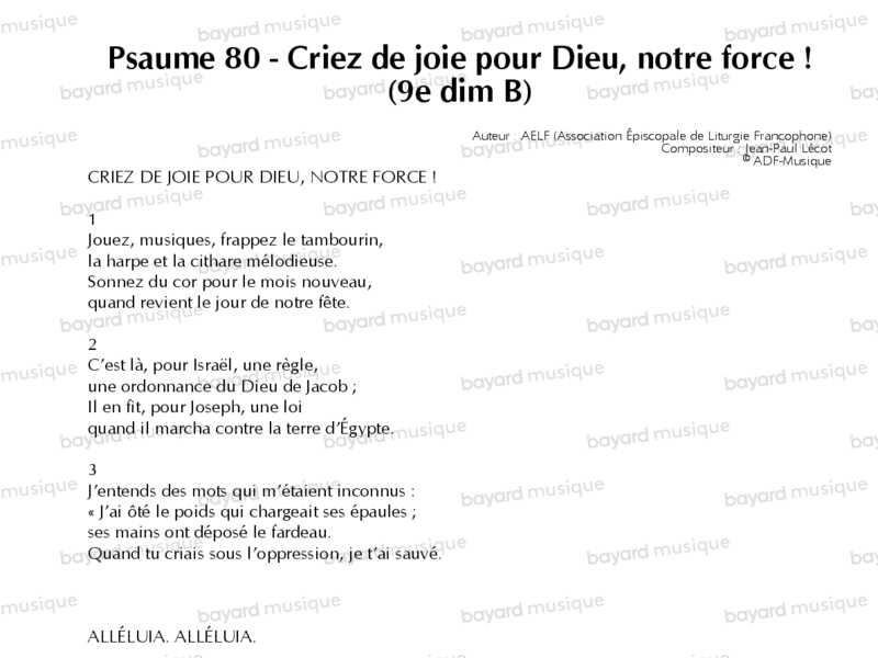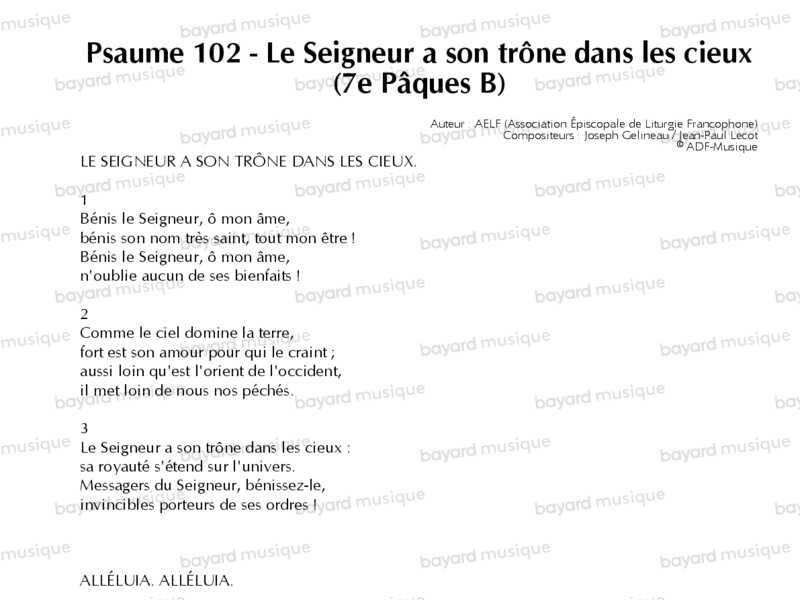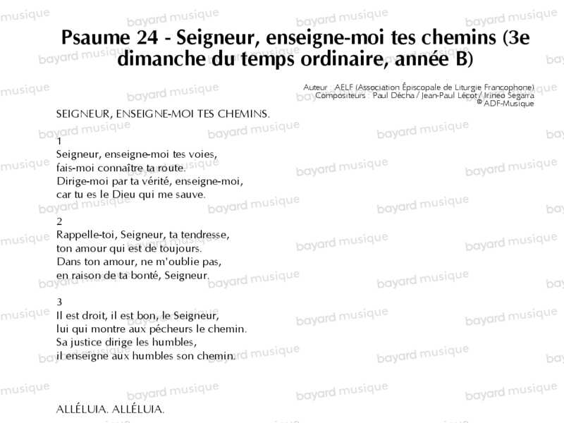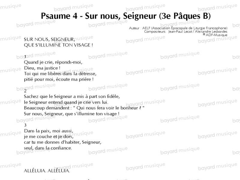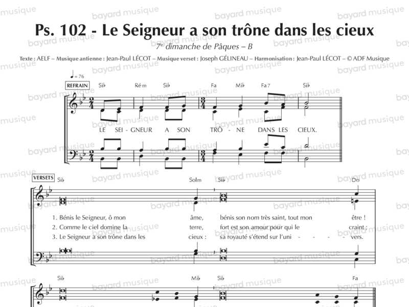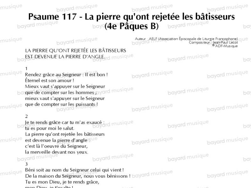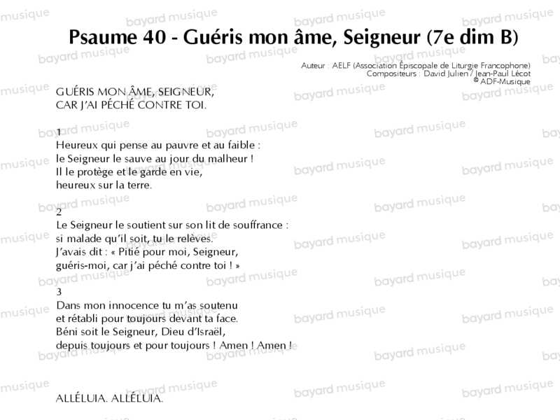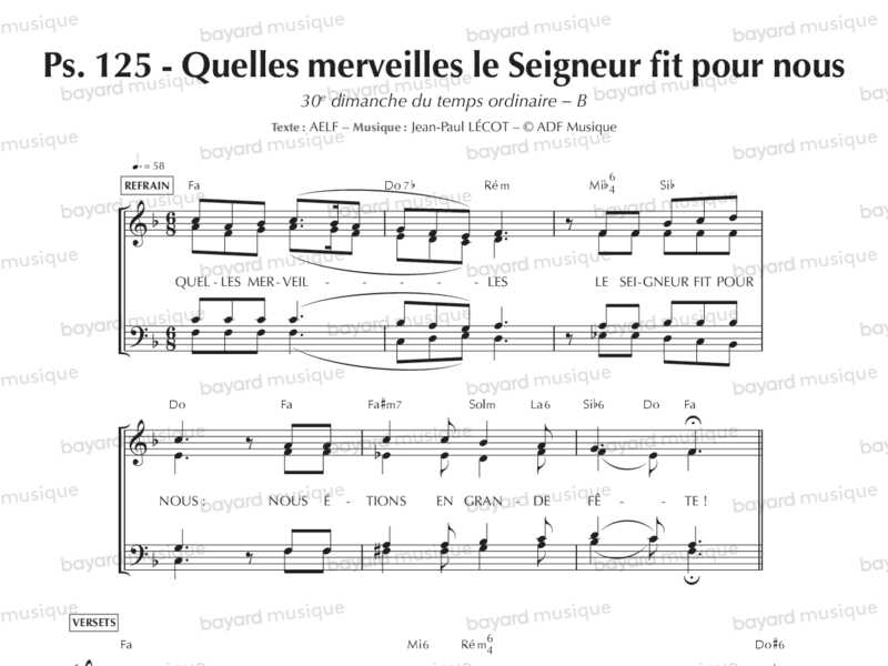 L'ensemble des psaumes et acclamations de l'Évangile pour les dimanches et fêtes de l'année B, mis en musique sous la direction de Jean-Paul Lécot, Maître de Chapelle du Sanctuaire de Lourdes.