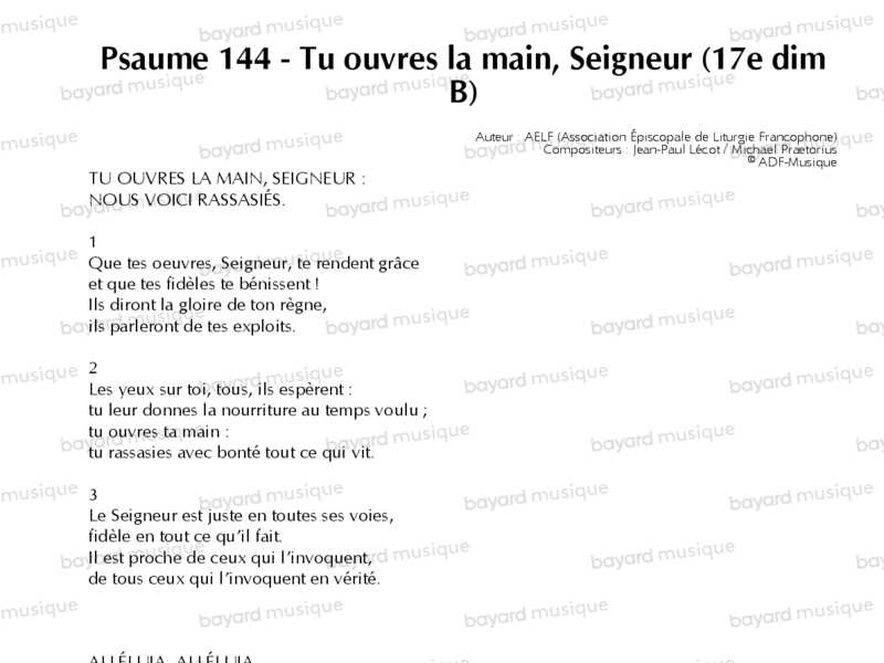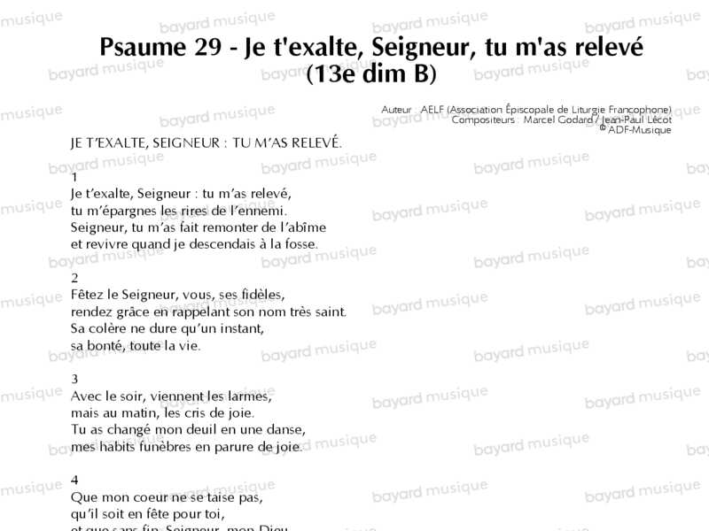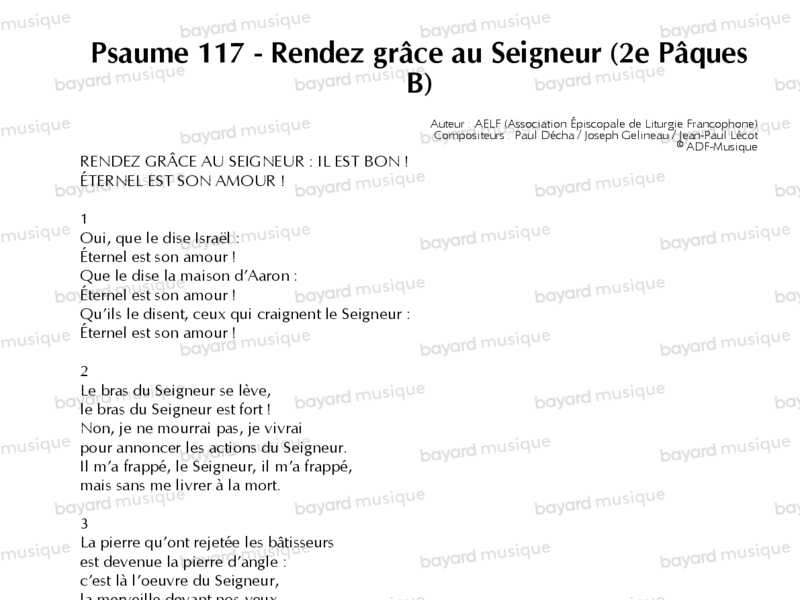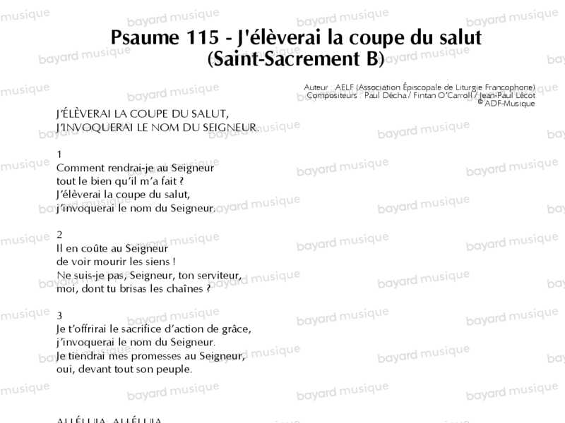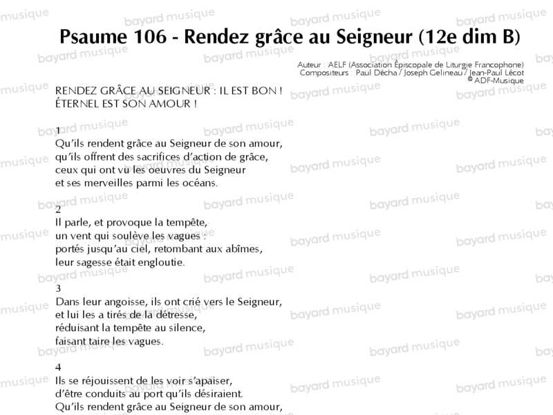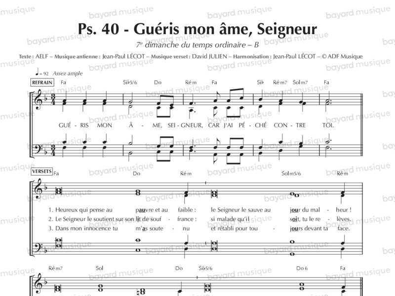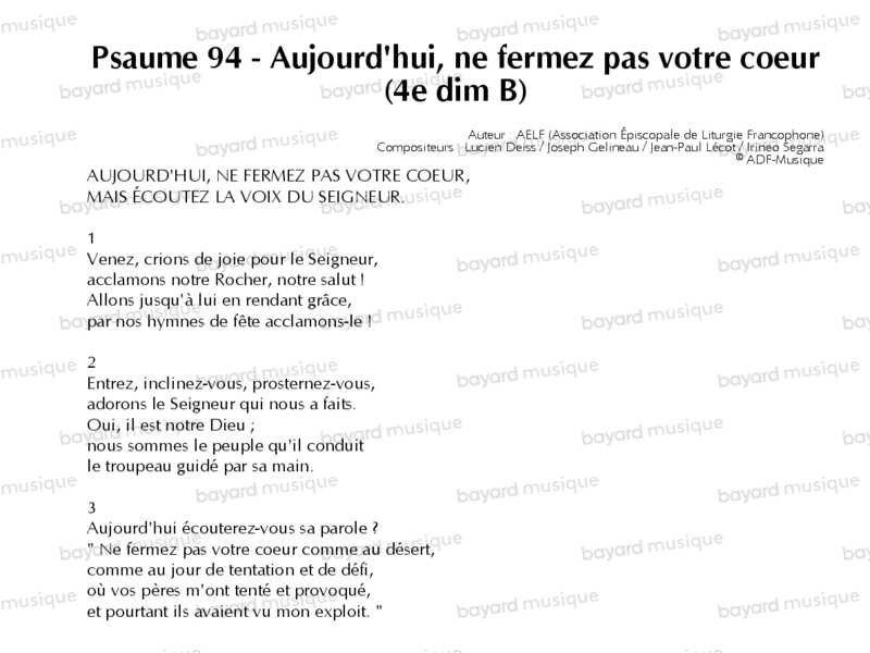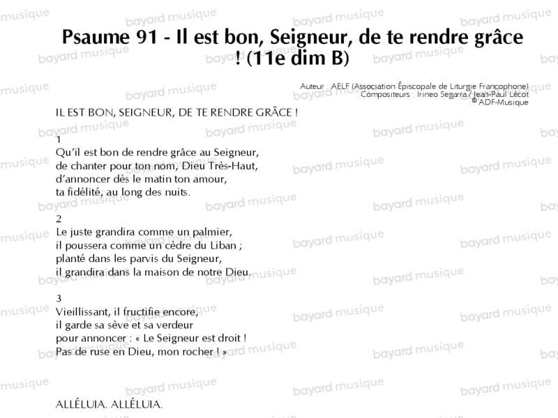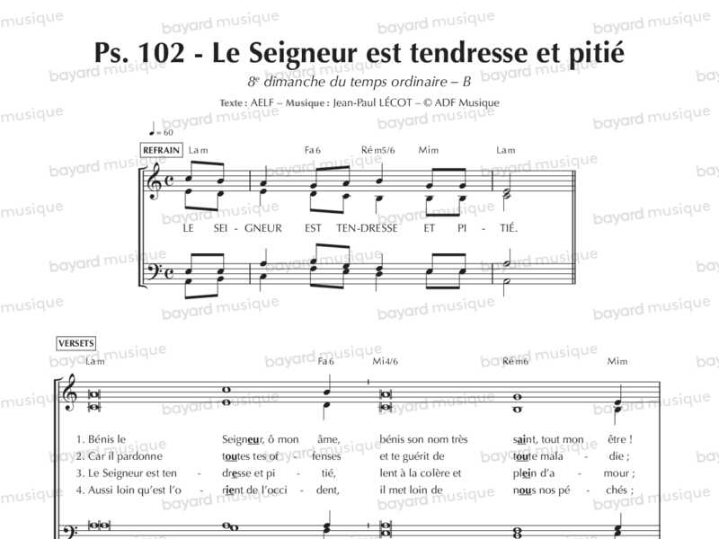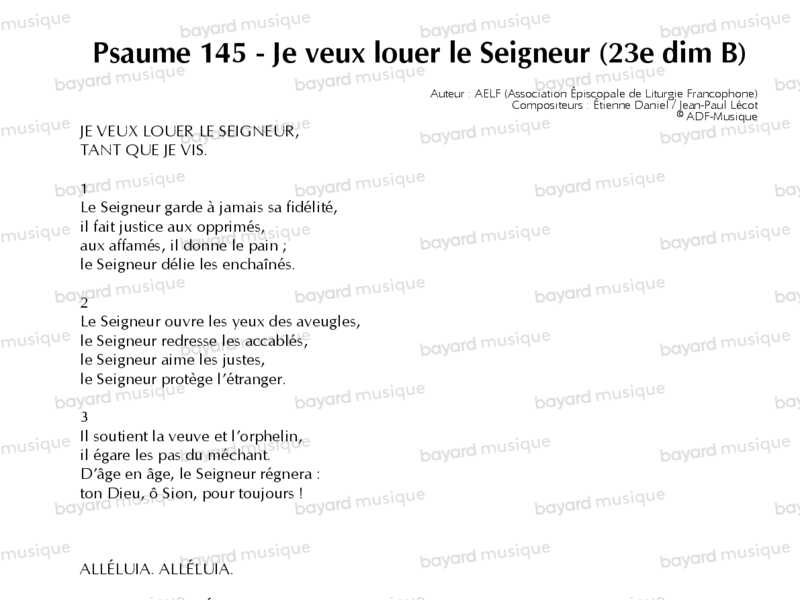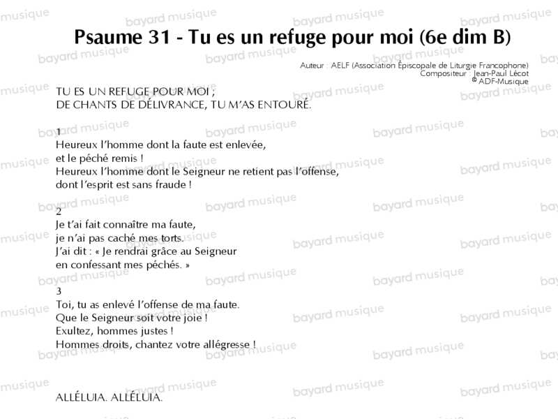 L'ensemble des psaumes et acclamations de l'Évangile pour les dimanches et fêtes de l'année B, mis en musique sous la direction de Jean-Paul Lécot, Maître de Chapelle du Sanctuaire de Lourdes.