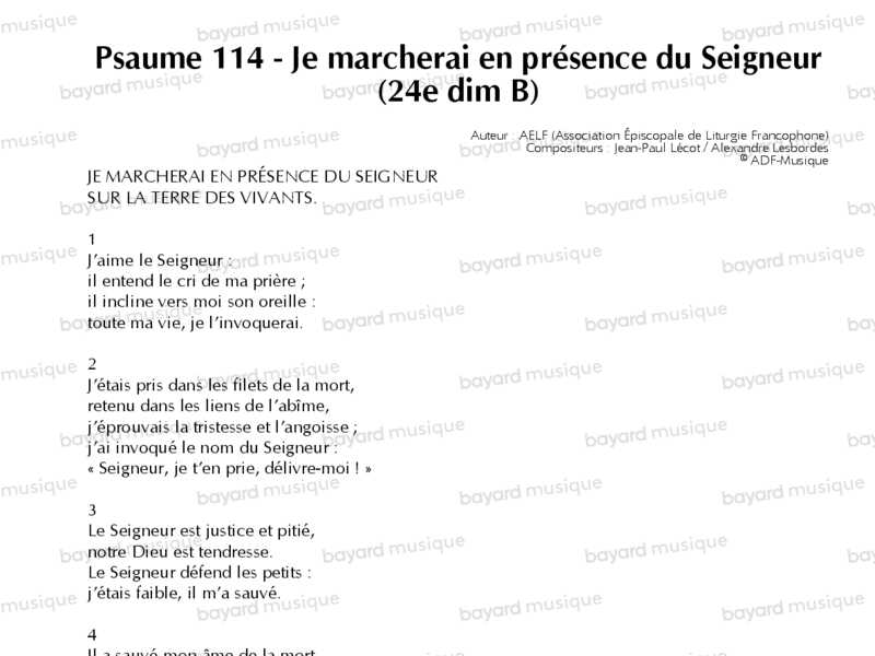 Psaume 114 - Je marcherai en présence du Seigneur, sur la terre des vivants (24e dimanche du temps ordinaire, année B)