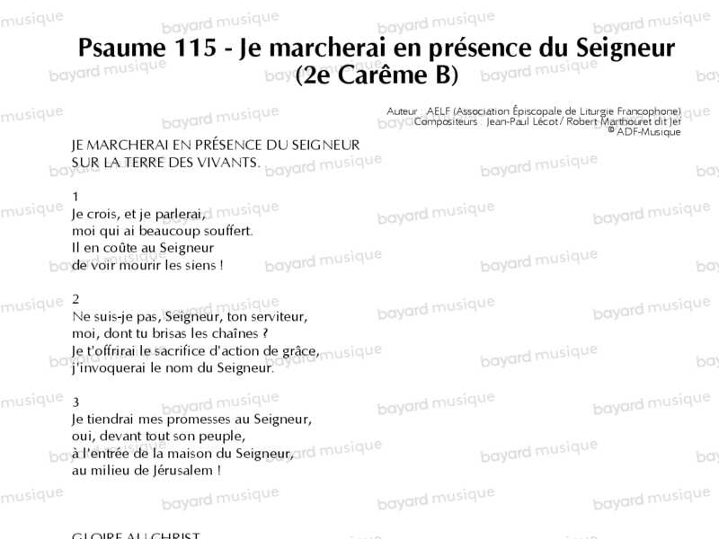 Psaume 115 - Je marcherai en présence du Seigneur (2e dimanche de Carême, année B)