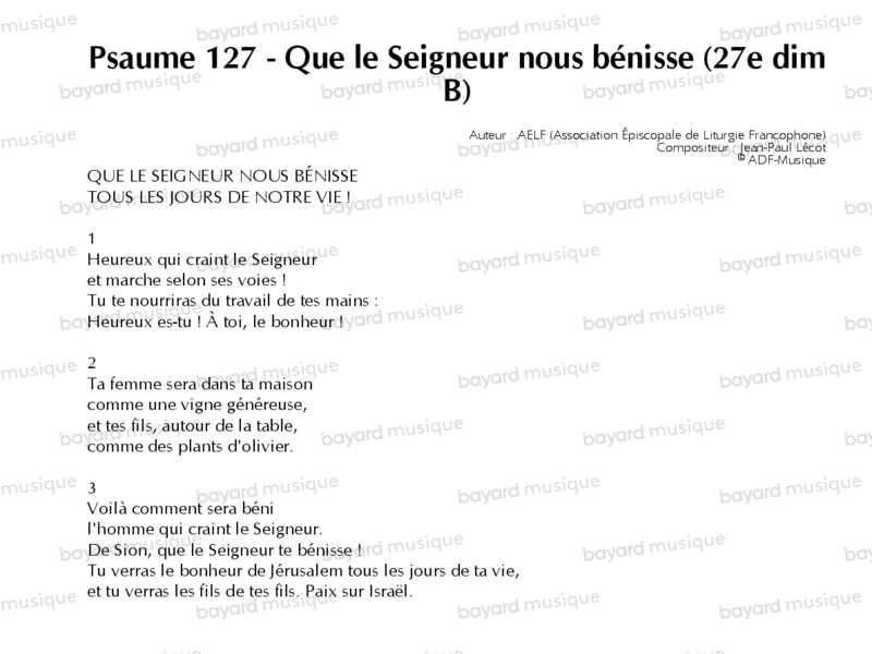 Psaume 127 - Que le Seigneur nous bénisse, tous les jours de notre vie (27e dimanche du temps ordinaire, année B)