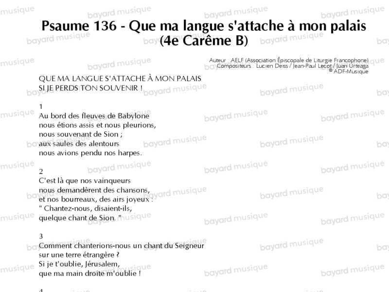 Psaume 136 - Que ma langue s'attache à mon palais si je perds ton souvenir ! (4e dimanche de Carême, année B)