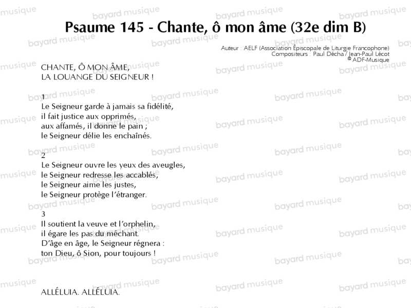 78. Psaume 145 - Chante, ô mon âme, la louange du Seigneur ! (32e dimanche du temps ordinaire, année B)