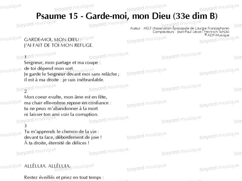 Psaume 15 - Garde-moi mon Dieu, j'ai fais de toi mon refuge (33e dimanche du temps ordinaire, année B)