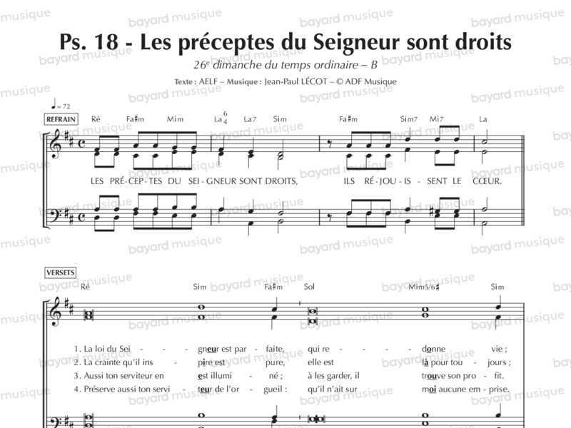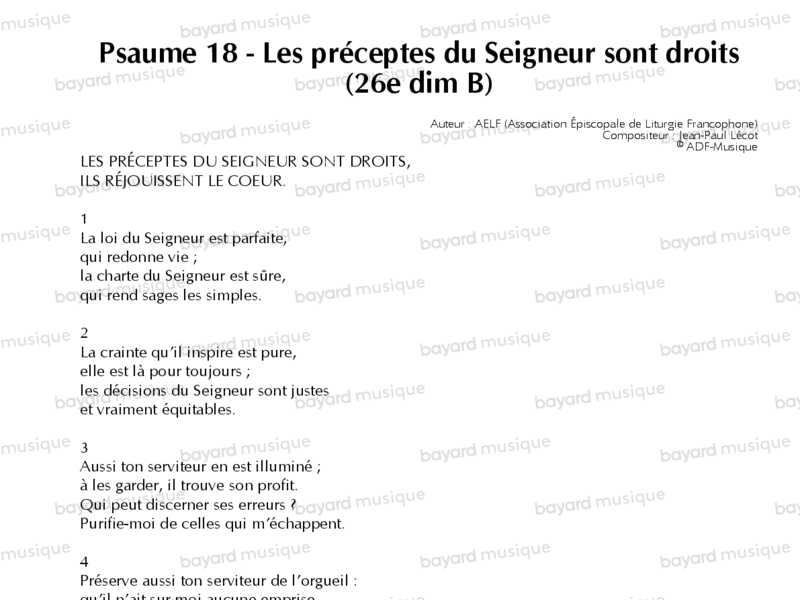 Psaume 18 - Les préceptes du Seigneur sont droits, ils réjouissent le cœur (26e dimanche du temps ordinaire, année B)