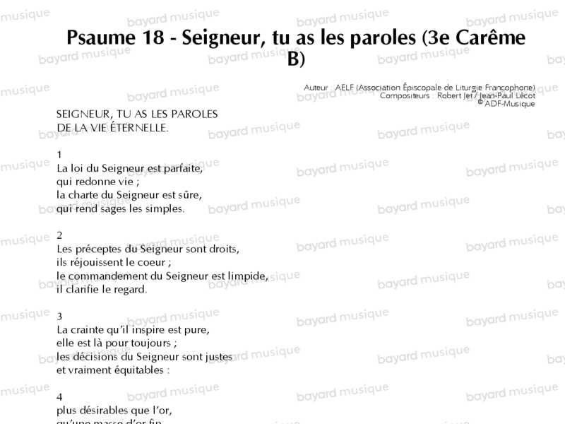 18. Psaume 18 - Seigneur, tu as les paroles de la vie éternelle (3e dimanche de Carême, année B)