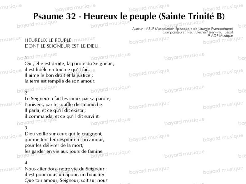 Psaume 33 - Goûtez et voyez comme est bon le Seigneur (20e dimanche du temps ordinaire, année B)