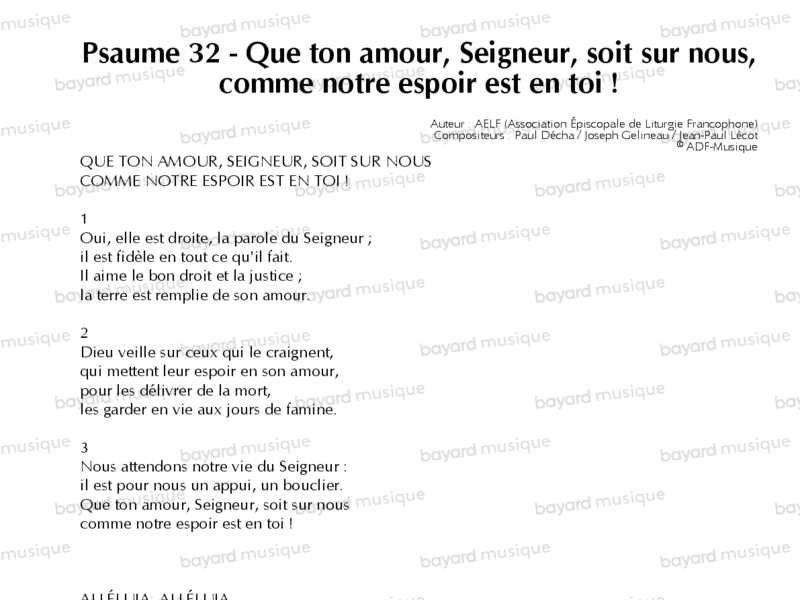 Psaume 32 - Que ton amour, Seigneur, soit sur nous, comme notre espoir est en toi ! (29e dimanche du temps ordinaire, année B)