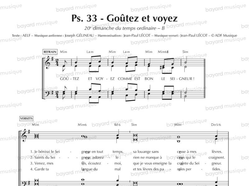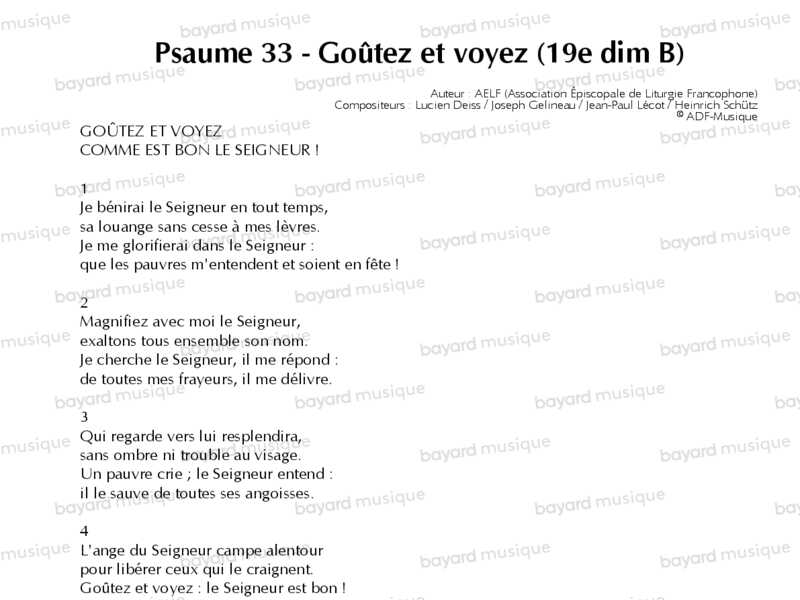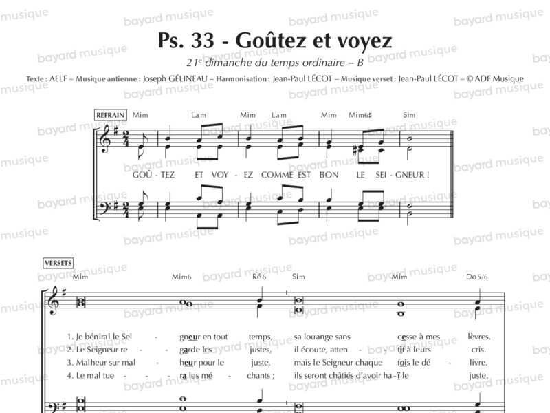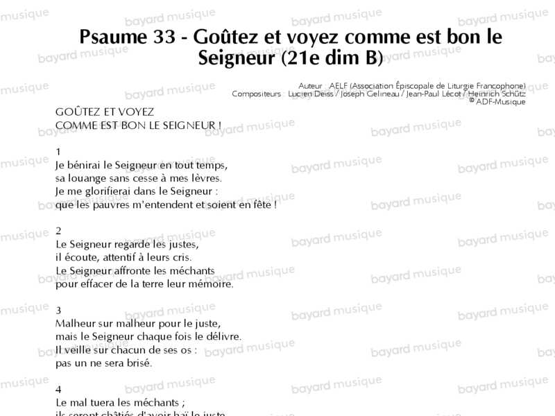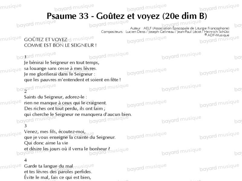 Psaume 33 - Goûtez et voyez comme est bon le Seigneur (21e dimanche du temps ordinaire, année B)