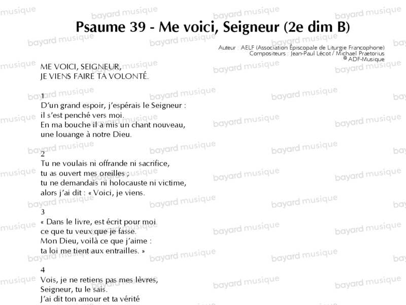 Psaume 39 - Me voici, Seigneur, je viens faire ta volonté (Annonciation du Seigneur, années A, B et C)