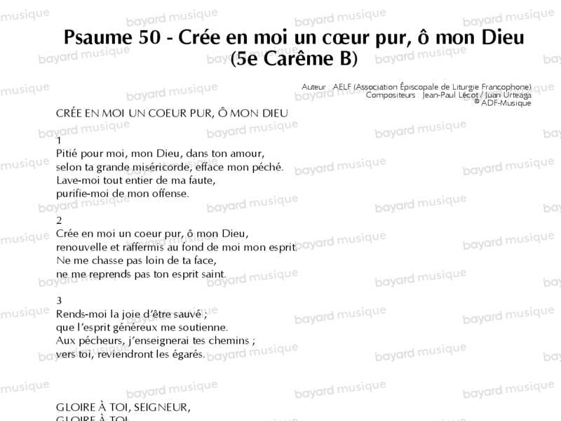 Psaume 50 - Pitié, Seigneur, car nous avons péché ! (Mercredi des Cendres, années A, B et C)