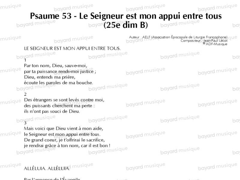 Psaume 53 - Le Seigneur est mon appui entre tous (25e dimanche du temps ordinaire, année B)