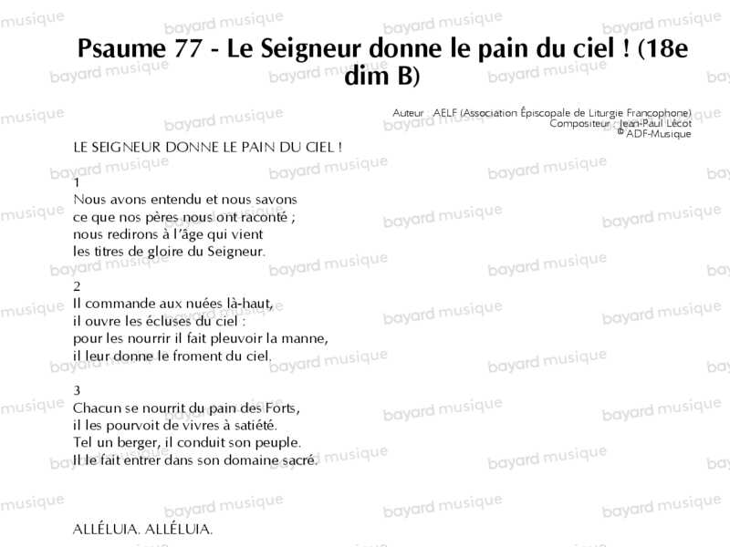 Psaume 77 - Le Seigneur donne le pain du ciel ! (18e dimanche du temps ordinaire, année B)