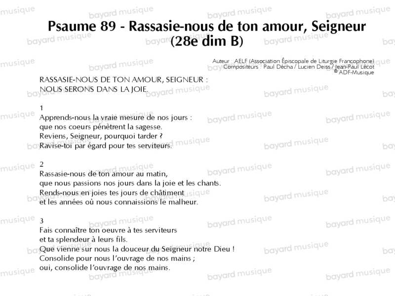 Psaume 89 - Rassasie-nous de ton amour, Seigneur, nous serons dans la joie (28e dimanche du temps ordinaire, année B)