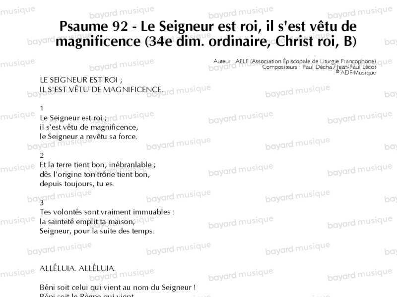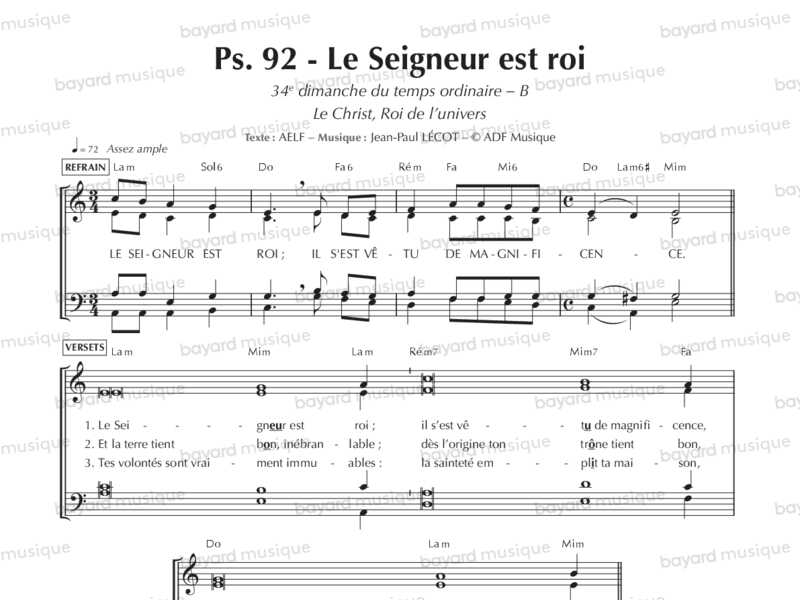 Psaume 92 - Le Seigneur est roi, il s'est vêtu de magnificence (34e dimanche du temps ordinaire, Christ roi de l'univers, année B)