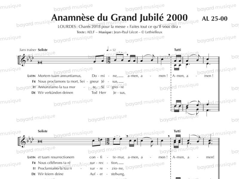Livret de partitions complet de la messe de Lourdes 2018 “Faites tout ce qu’Il vous dira !” et contrechants de trompette en Sib et en Ut