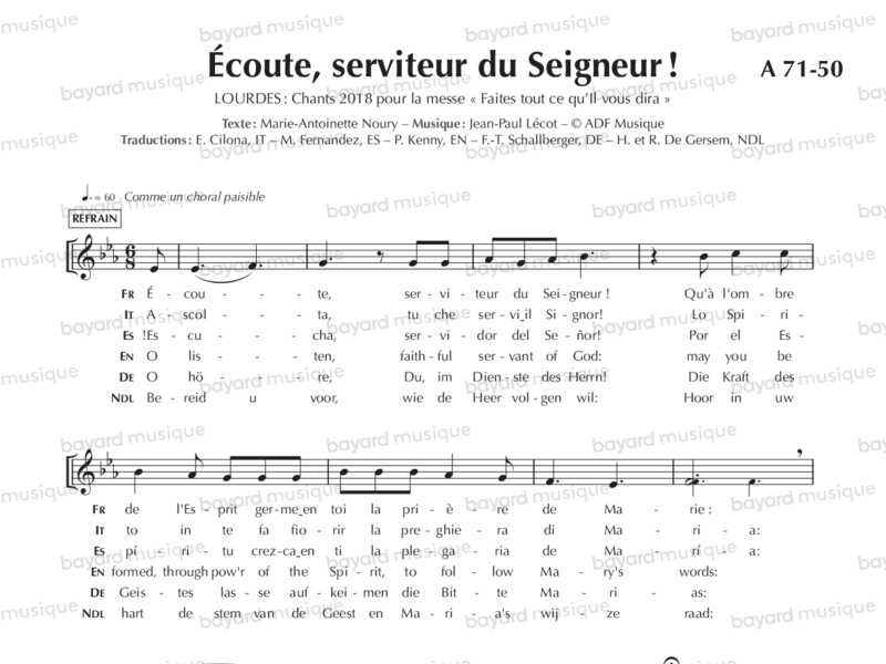 Interprété par Jean-Paul Lécot, Alain Chérel et le quatuor vocal du sanctuaire de Lourdes.