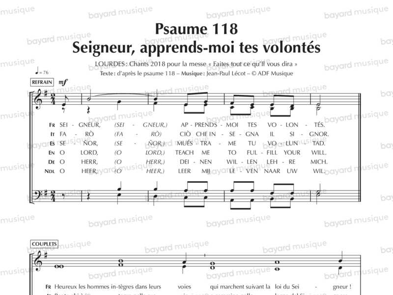 Partition 2018 en version multilingue (français, italien, espagnol, anglais, allemand, néerlandais)