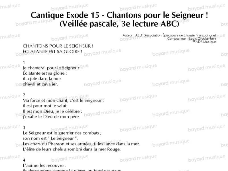 Cantique Exode 15 - Chantons pour le Seigneur ! Éclatante est sa gloire ! (Veillée pascale, après la 3e lecture, années A, B et C)