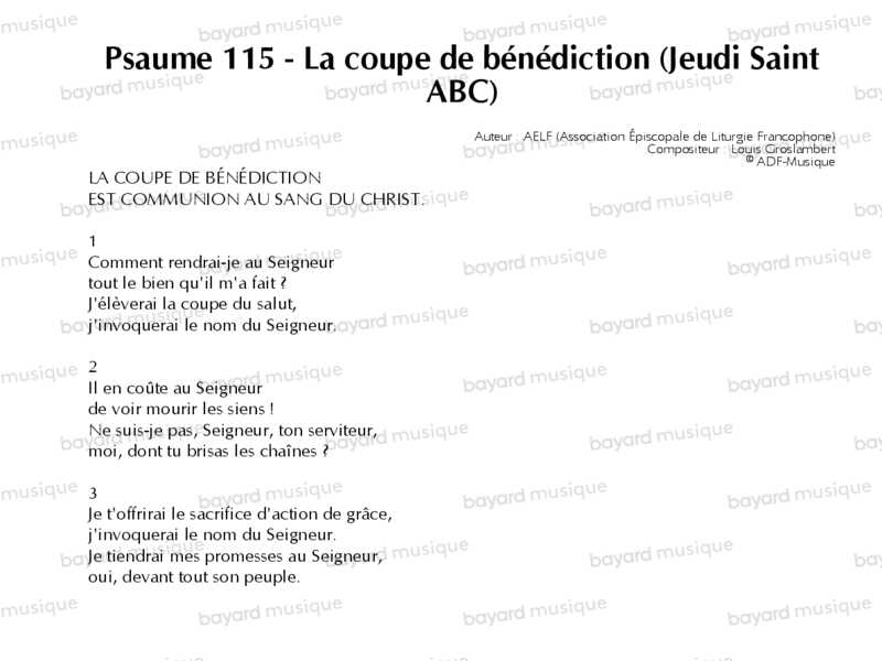 Psaume 115 - La coupe de bénédiction est communion au sang du Christ (Jeudi Saint, années A, B et C)