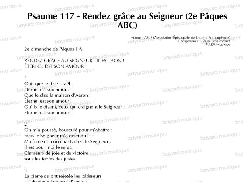 Psaume 117 - Rendez grâce au Seigneur, il est bon ! Éternel est son amour ! (2e dimanche de Pâques, année A)