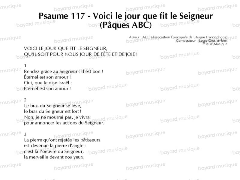 Psaume 117 - Voici le jour que fit le Seigneur, qu'il soit pour nous jours de fête et de joie ! (Pâques, années A, B et C)