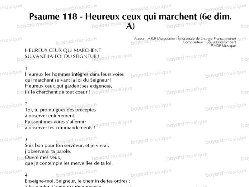 Psaume 118 - Heureux ceux qui marchent suivant la loi du Seigneur ! (6e dimanche du temps ordinaire, année A)