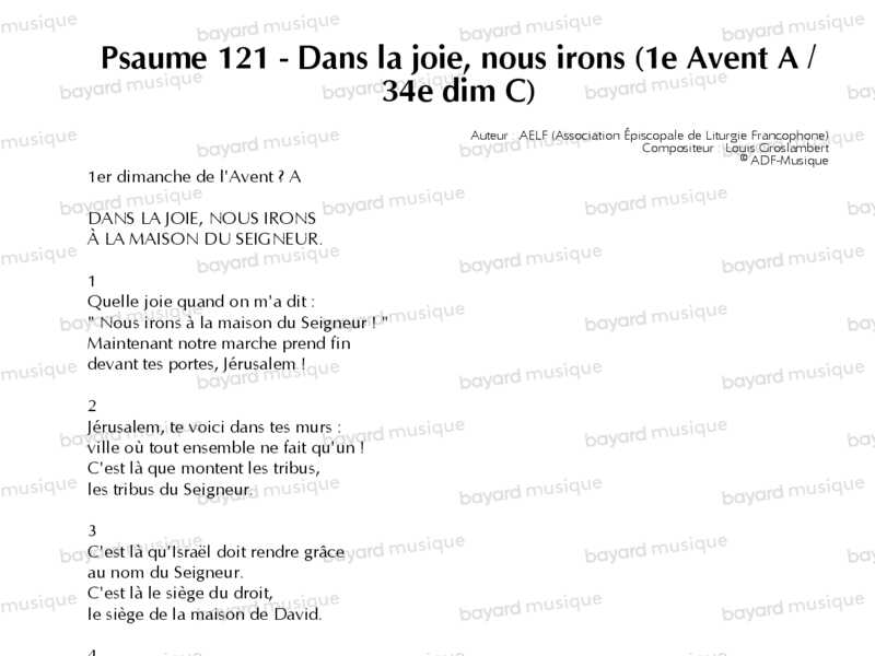 35. Psaume 121 - Dans la joie, nous irons à la maison du Seigneur (1er dimanche de l'Avent, année A)