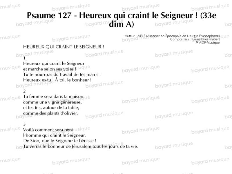 37. Psaume 127 - Heureux qui craint le Seigneur, heureux qui craint le Seigneur ! (33e dimanche du temps ordinaire, année A)
