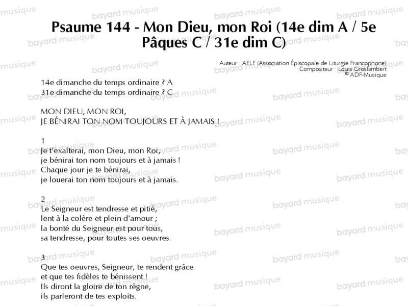 Psaume 144 - Mon Dieu, mon roi, je bénirai ton nom toujours et à jamais ! (14e dimanche du temps ordinaire, année A)
