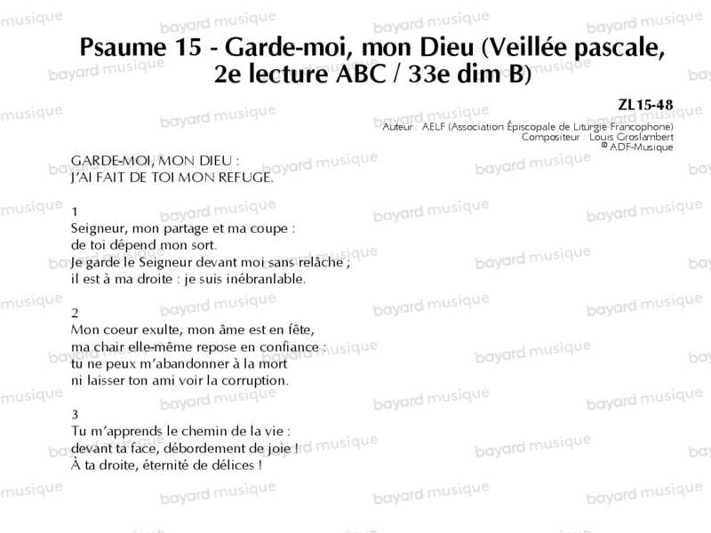 01. Psaume 15 - Garde-moi mon Dieu, j'ai fait de toi mon refuge (Veillée pascale, après la 2e lecture, années A, B et C)