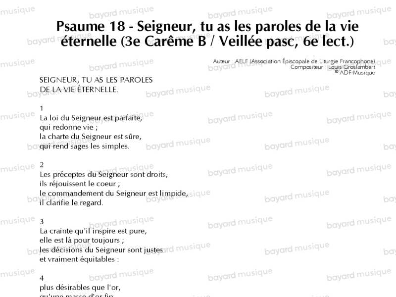 Psaume 18 - Seigneur, tu as les paroles de la vie éternelle (Veillée pascale, après la 6e lecture, années A, B et C)