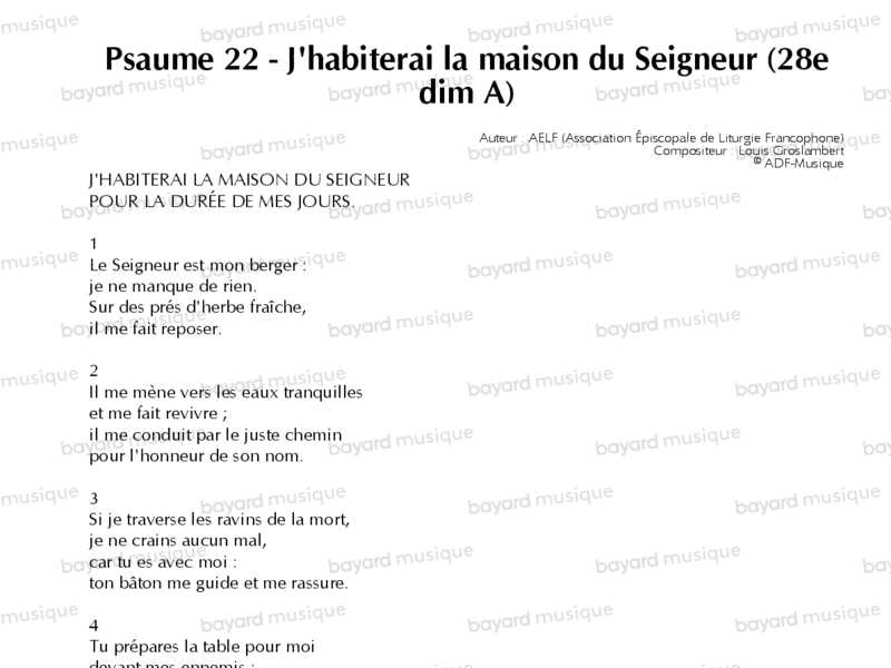 05. Psaume 22 - J'habiterai la maison du Seigneur, pour la durée de mes jours (28e dimanche du temps ordinaire, année A)