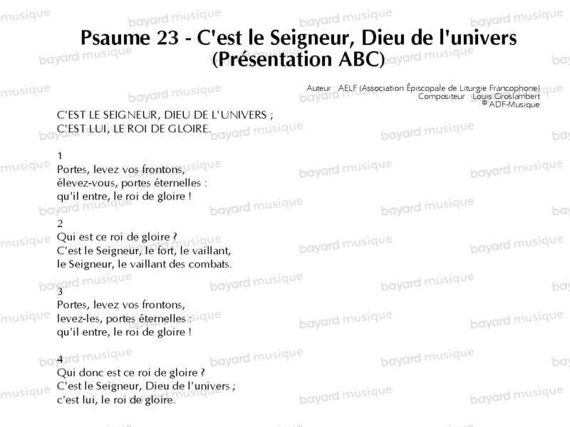 Psaume 23 - C'est le Seigneur Dieu de l'Univers, c'est lui le roi de gloire (2 février, présentation du Seigneur, années A, B et C)