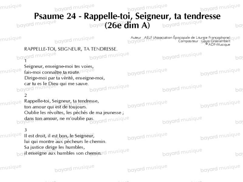 Psaume 24 - Rappelle-toi, Seigneur, ta tendresse (26e dimanche du temps ordinaire, année A)