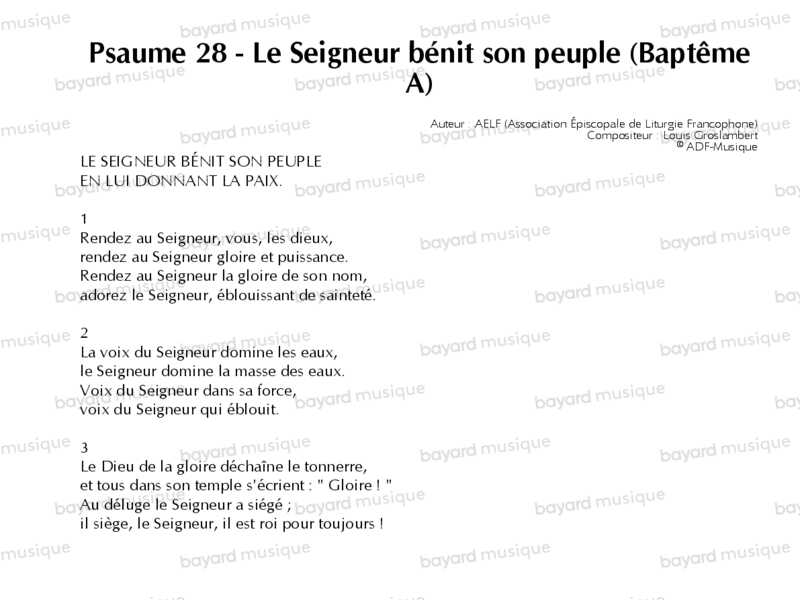 Psaume 28 - Le Seigneur bénit son peuple en lui donnant la paix (Baptême du Seigneur, année A)