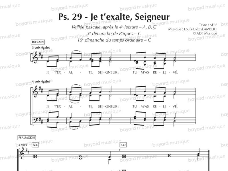 Psaume 29 - Je t'exalte Seigneur, tu m'as relevé (Veillée pascale, après la 4e lecture, années A, B et C)