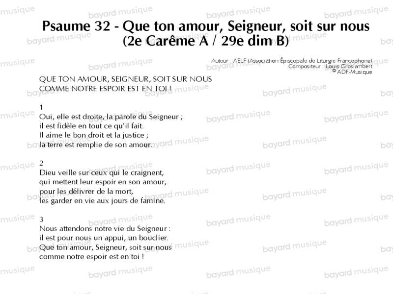 12. Psaume 32 - Que ton amour Seigneur soit sur nous, comme notre espoir est en toi ! (2e dimanche de Carême, année A)