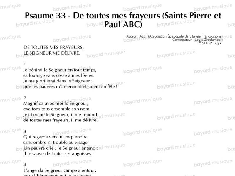 13. Psaume 33 - De toutes mes frayeurs, le Seigneur me délivre (29 juin, saints Pierre et Paul, années A, B et C)